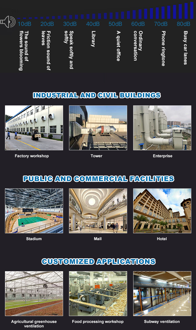 Presiune aerodynamică ridicată, volum mare de aer, zgomot redus și consum scăzut de energie. |